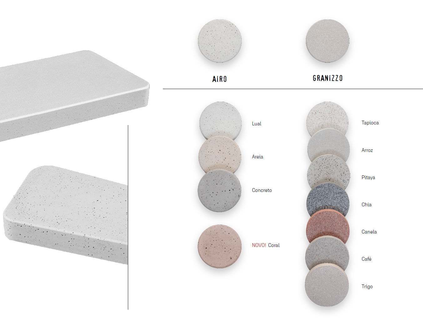 O acabamento Airo foi desenvolvido para oferecer mais e conforto térmico em áreas externas, graças à sua superfície porosa que absorve menos calor e proporciona uma sensação mais agradável ao toque especialmente em dias quentes. É uma opção mais acessível dentro da linha de Pisantes Adamá, mantendo os mesmos formatos, proporções e elegância do design original. Com visual suave e textura natural, o Airo se adapta com leveza ao paisagismo, criando composições que equilibram estética, conforto e funcionalidade.